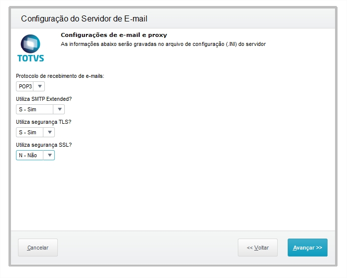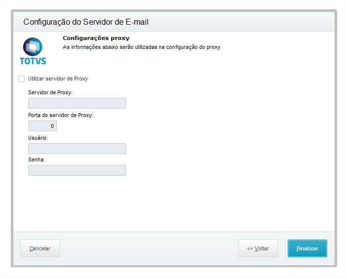 Acesse o Configurador e o menu Ambiente -> E-mail/Proxy -> Configurar